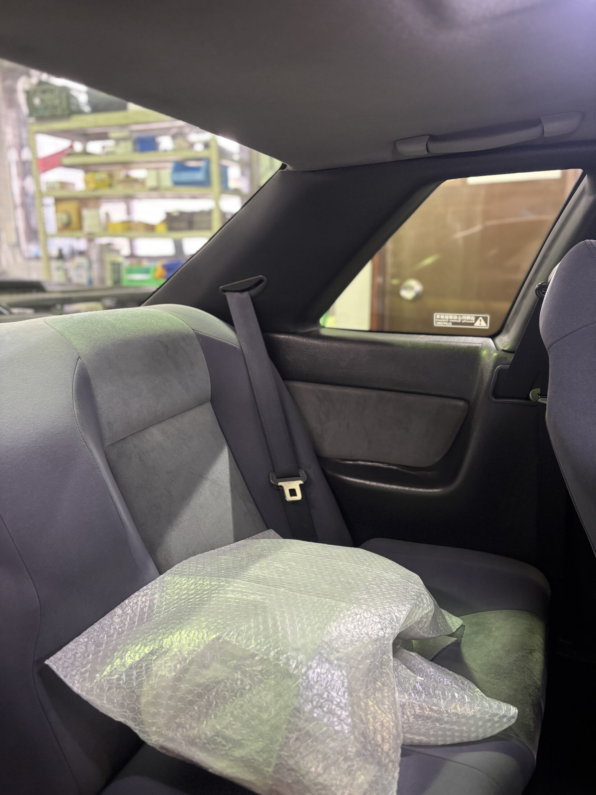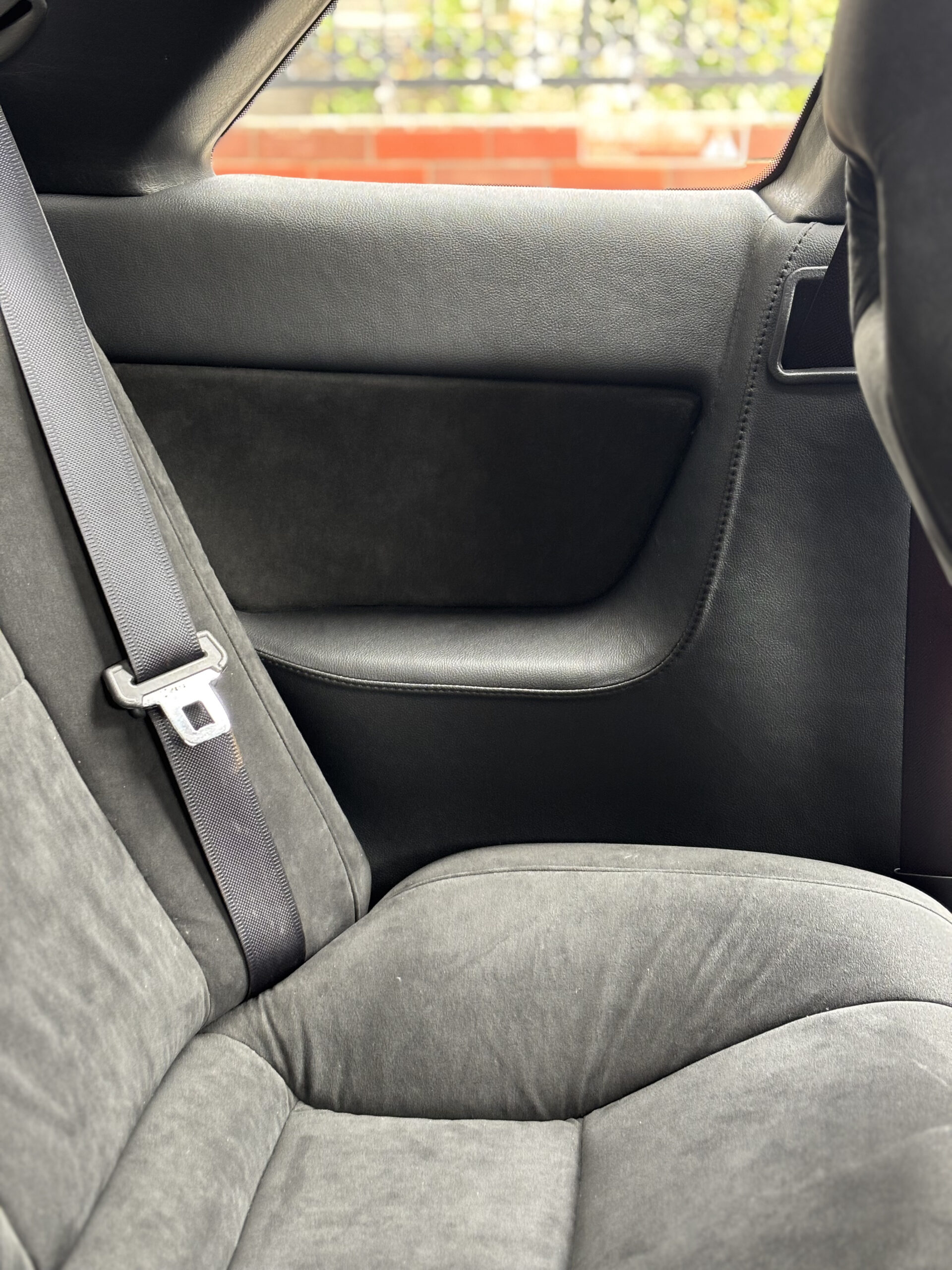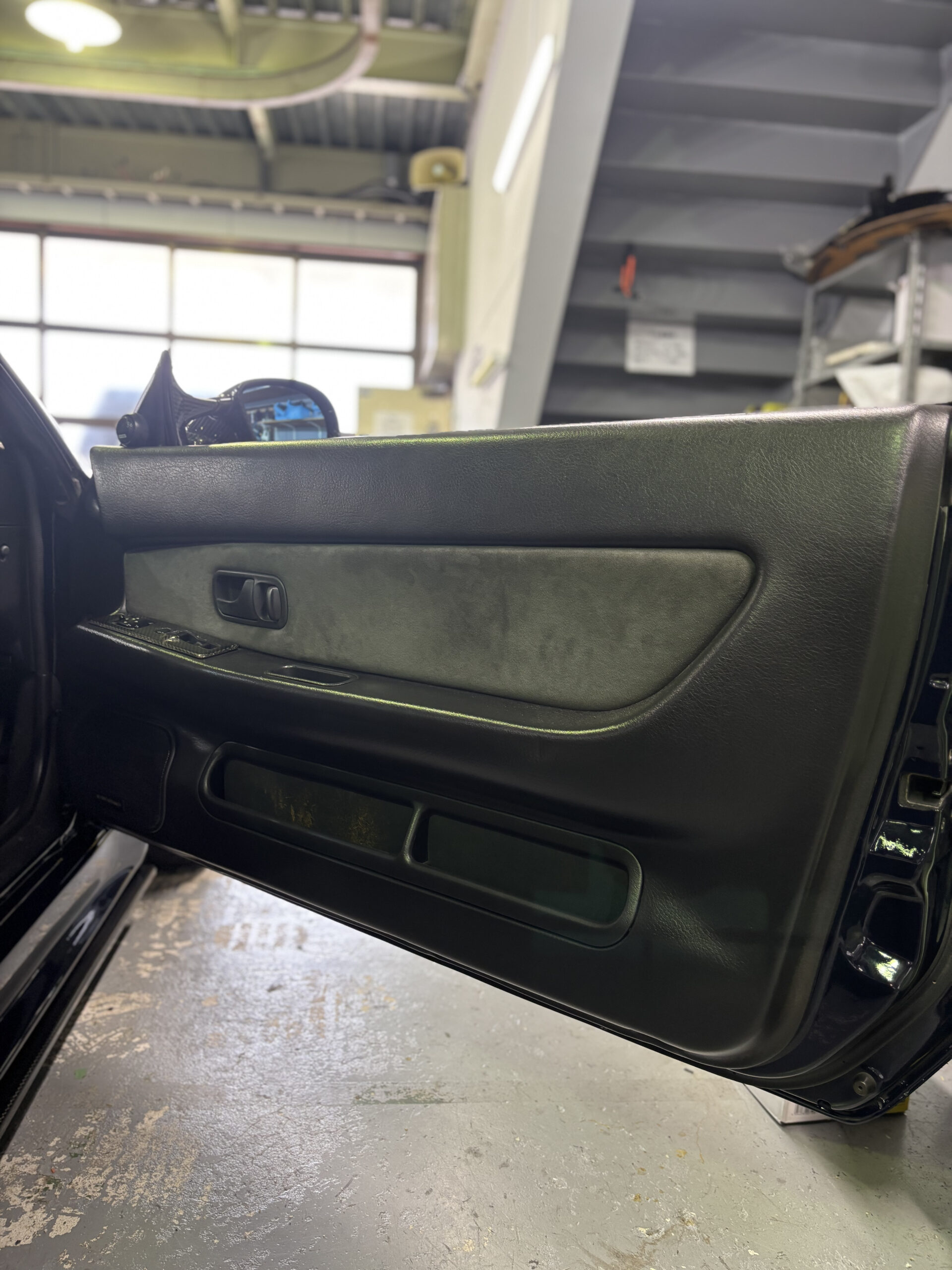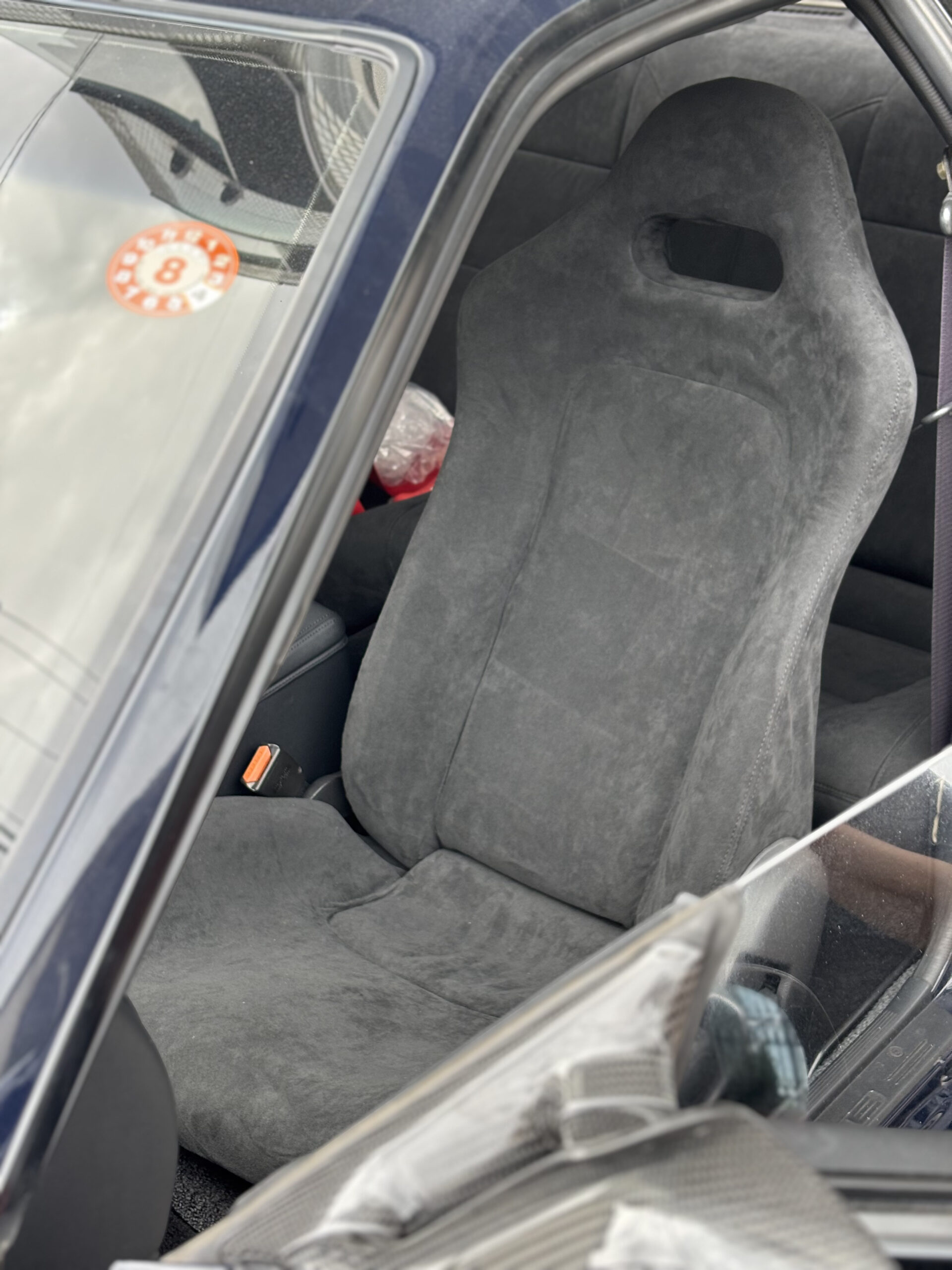 シートにはオールアルカンターラで、ダッシュボードにはビーガンレザーといった内容ですが、純正と言われてもわからないような仕上がりとなりました。