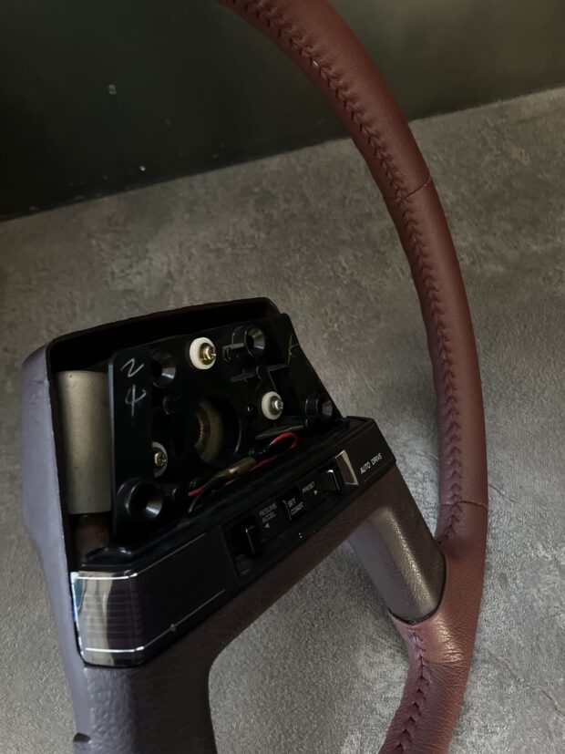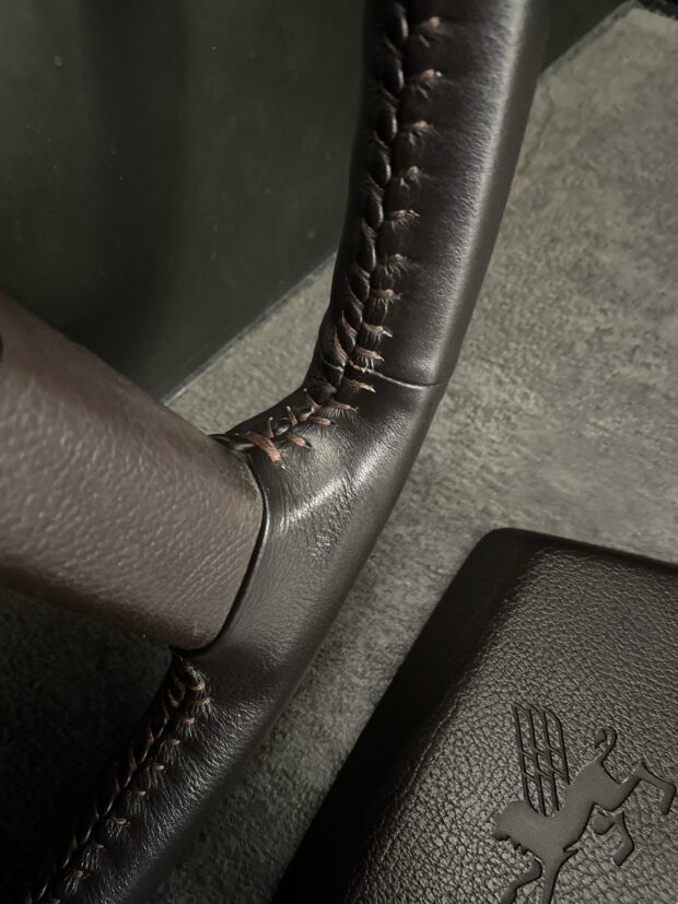 純正とは一味違ったボルドー色を使いステッチもボルドー色で揃え、純正と雰囲気が似たジャパニーズステッチで仕上げました。